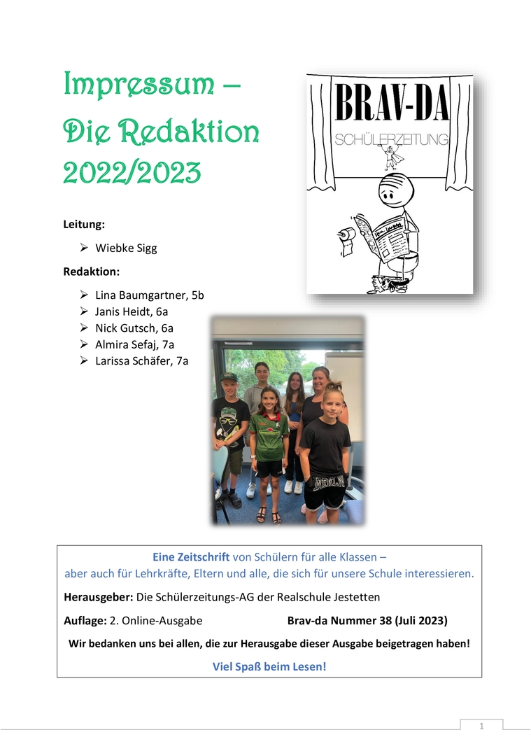 Unsere erste Online-Ausgabe der Schülerzeitung Brav-da findet hier ihr