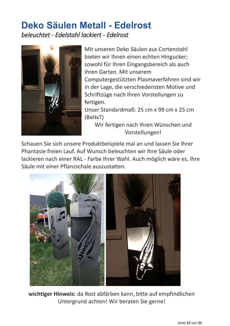 Phantasie freien Lauf. Auf Wunsch beleuchten wir Ihre Säule oder
