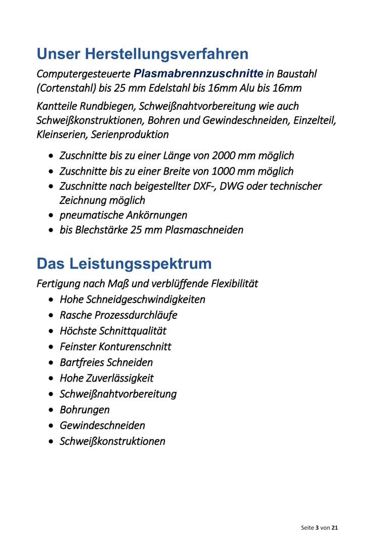 bis Blechstärke 25 mm Plasmaschneiden