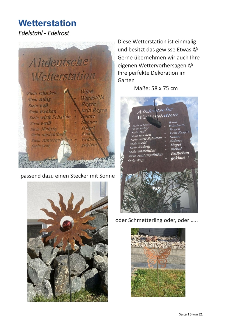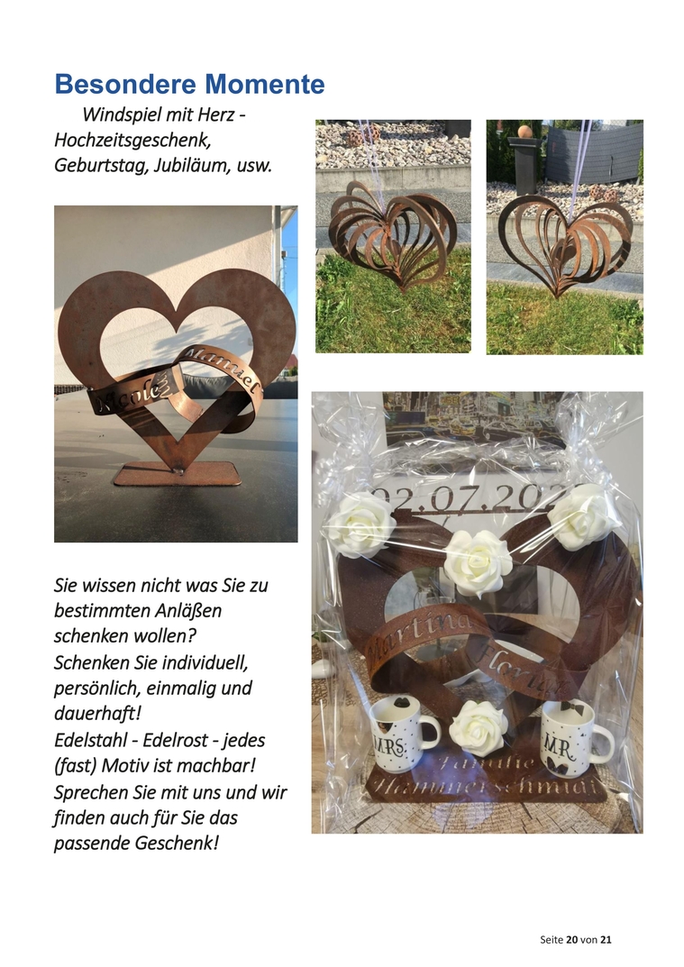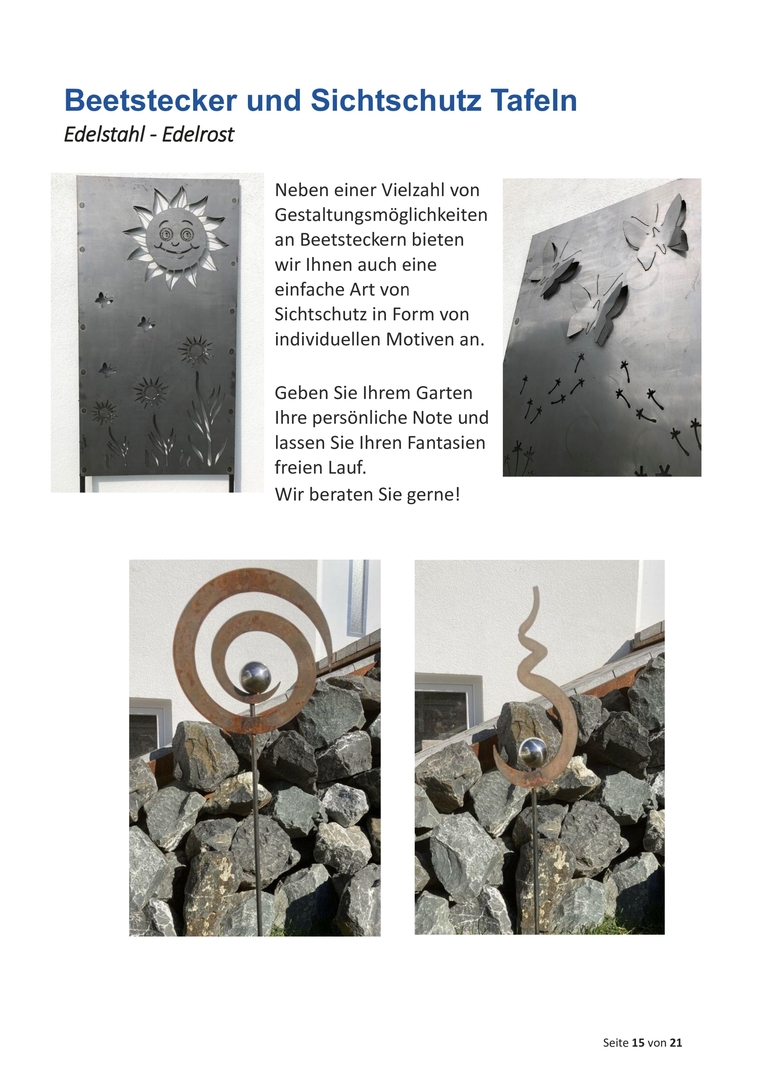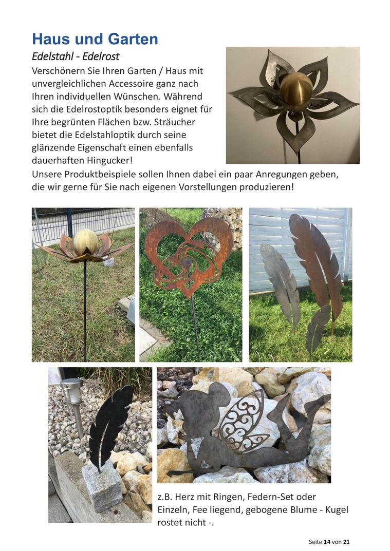 Sie wissen nicht was Sie zu bestimmten Anläßen schenken wollen? Schenken Sie individuell, persönlich, einmalig und dauerhaft! Edelstahl - Edelrost - jedes (fast) Motiv ist machbar! Sprechen Sie mit uns und wir