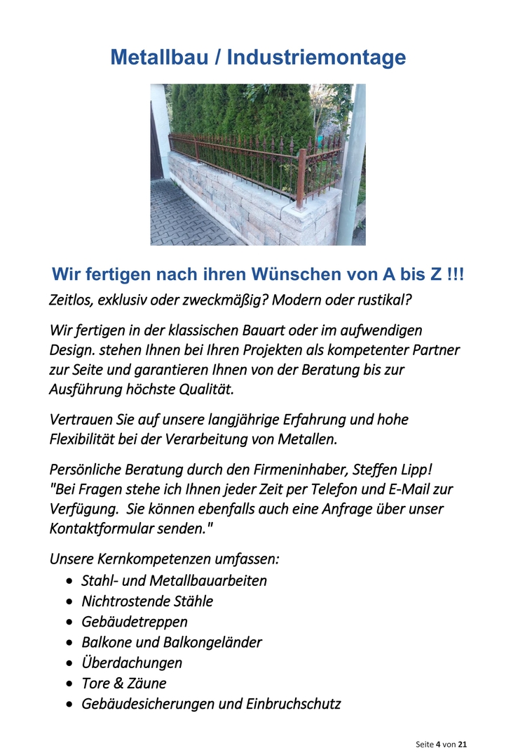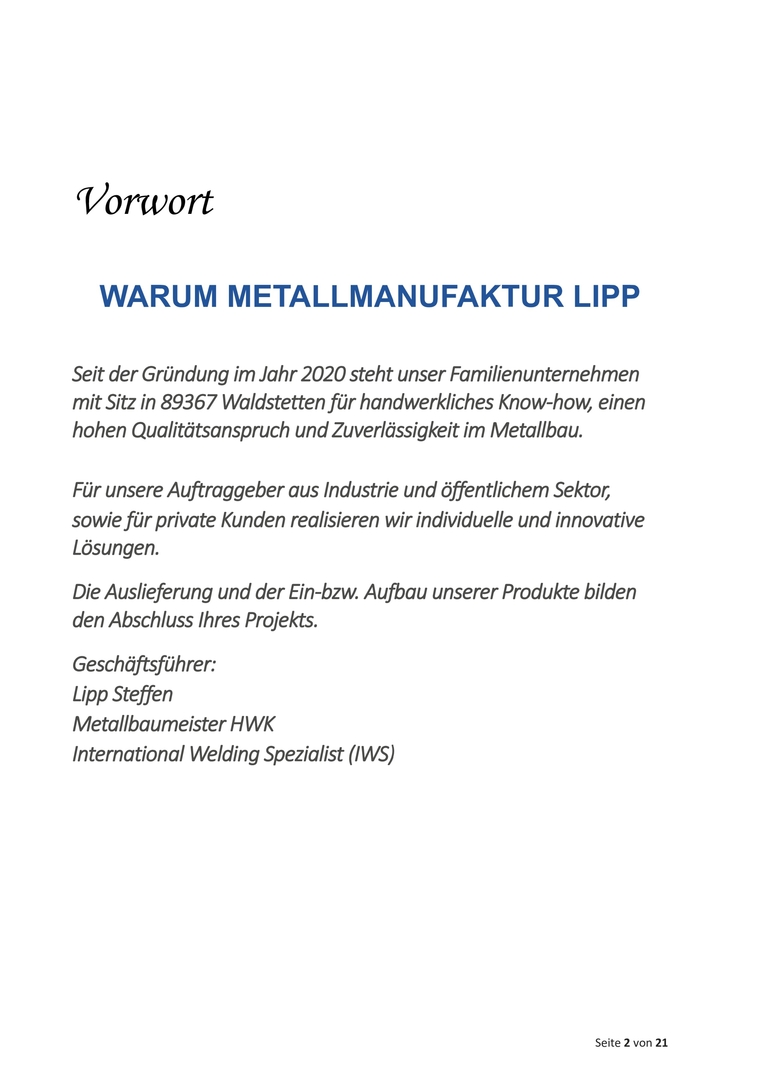 Geschäftsführer: Lipp Steffen Metallbaumeister HWK International Welding Spezialist (IWS)